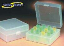 Вмещает 12-ть 10 мм кювет. Высота кювет до 60 мм. Крышка на петлях, защелкивается. Съемное основание. Размеры: 115 х 115 х 60 мм.