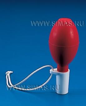 Литая каучуковая груша, объемом приблизительно 60 мл, с тремя клапанами, содержащими стеклянные шарики, которые можно контролировать нажатием пальца. Не имеет металлических частей, которые могли бы корродировать, следовательно, может использоваться с любыми жидкостями, кроме разъедающих резину. Подходит для цилиндрических пипеток объемом 2 – 50 мл. Поставляется с адаптером для пипеток объемом более 20 мл.
