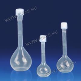 Мерные колбы, в которых полностью отсутствует образование мениска, что облегчает измерение объема, калиброваны гравиметрическим методом при температуре +20°C, представляют собой цельно штампованное изделие из прозрачного, особенно при контакте с жидкостями полипропилена. Форма узкого горлышка обеспечивает высокую точность показаний. Выдерживают автоклавирование, характеризуются более высокой химической чистотой в сравнении со стеклом, благодаря отсутствию способности поглощения химических веществ. Поставляются в комплекте с крышками. Пригодны для продуктов питания.