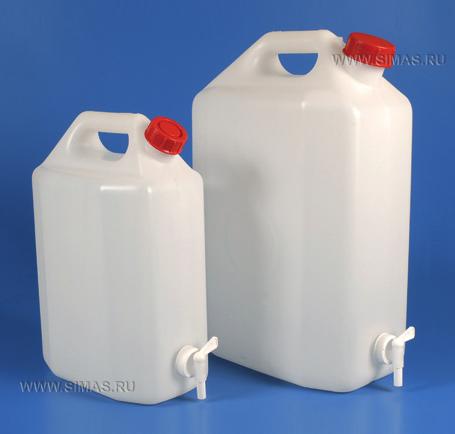 Канистры были разработаны специально для максимально рационального использования рабочего пространства лабораторий. Предназначены для хранения воды, водных растворов и растворителей. Пригодны для хранения пищевых продуктов, снабжены удобной ручкой. Кран расположен так , что не мешает вертикальному размещению канистры.