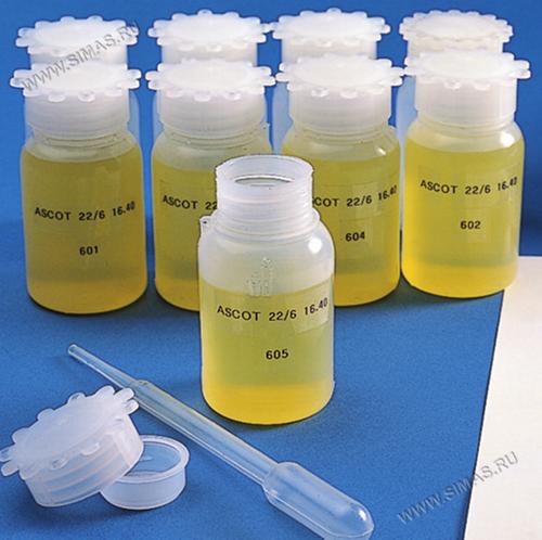 Идеальны для водных и масляных образцов – овальная форма гарантирует полное опорожнение, наличие градуировки позволят осуществлять примерную оценку объема содержимого. Предусмотрена возможность пломбировки для предотвращения несанкционированного открытия посредством использования соответствующих петелек. Горло и резьба соответствуют нормам DIN 13316 и 168. Пригодны для продуктов питания.