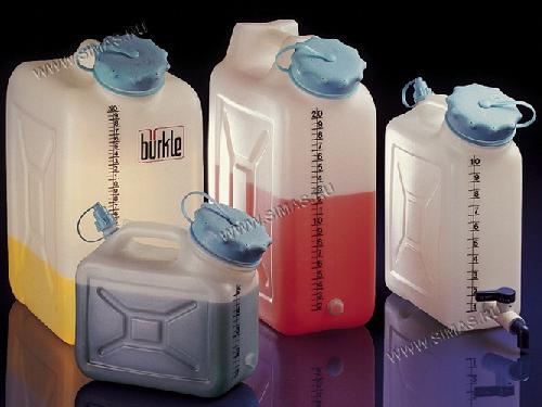 Канистры с очень широким заправочным отверстием (88 мм), простая внутренняя очистка, что особенно важно при хранении чувствительных веществ. Ручка и навинчивающаяся крышка обеспечивают надежный и удобный транспорт. Канистры очень хорошо использовать также в качестве канистр для отстаивания. К подключению непосредственно над днищем можно подключить спускной кран или другие аксессуары с резьбой 3/4".