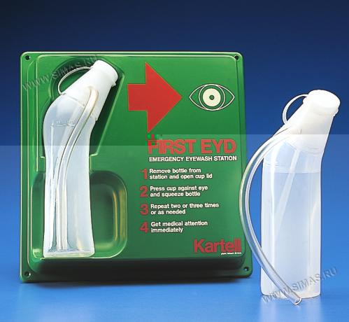 Заполняется дистиллированной водой или другой медицинской жидкостью офтальмологического назначения. Бутылка снабжена глазной ванночкой с крышкой, форма которой специально разработана для быстрой и удобной промывки глаз, удаления чужеродных тел и предотвращения серьезных повреждений зрения. В верхней части расположен автоматический клапан, обеспечивающий приток воздуха и предотвращающий обратное движение жидкости в бутылку. Перфорированный диск, расположенный в центре ванночки разбивает поток воды, равномерно направляя его на глаз. Кроме того, имеется трубка отвода жидкости после промывки глаза. Пригодна для продуктов питания.