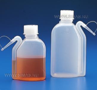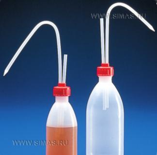 Промывалка с трубкой, штампованной вместе с корпусом флакона, что позволяет полностью исключить возможность течи вследствие недостаточно тесного примыкания крышки к корпусу флакона. Овальная форма обусловливает удобный захват при переноске изделия и увеличивает его устойчивость. Пригодны для продуктов питания.