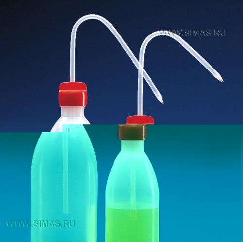 Промывалки с узким горлом, красной крышкой, не градуированные