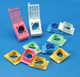 Кассеты для заливки тканей в парафин, универсального типа, с защелкивающейся, легко снимаемой крышкой. Выпускаются следующие цвета: белый, синий, желтый, зеленый, розовый и красный.
