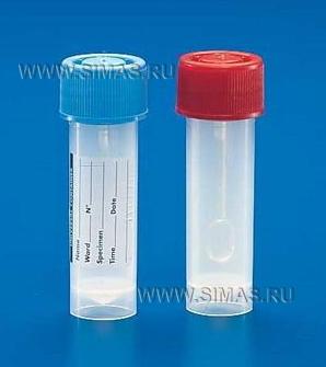 Контейнер с завинчивающейся крышкой и ложечкой, объемом 30 и 60 мл. Поставляются также стерилизованные изделия.