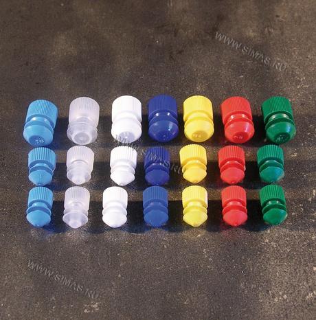 Материал - полиэтилен. Специальные пробки для повторного закрывания "вакуумных" пробирок для забора крови. Пригодны для стеклянных и полимерных пробирок.