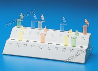 Созданы специально для титрования. Пробирки удерживаются в нужном положении вертикальными опорами. Содержимое пробирок всегда остается видимым. Выдерживают температуру до 120 °С. Можно устанавливать в водяные бани.
