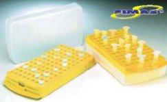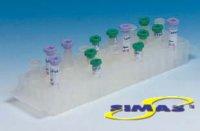 Двухуровневый штатив для пробирок, цветовая гамма представлена четырьмя цветами; представляет собой универсальную опору, выдерживает автоклавирование, может использоваться как в сухой среде, так и на водяной бане и в морозильной камере. На каждом штативе имеются выгравированные буквенно-числовые изображения, облегчающие распознание образцов.