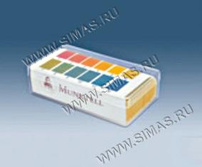 Описание: Универсальная индикаторная бумага пропитана смесью нескольких индикаторов, приобретающих определенный цвет при контакте с образцом. pH определяется путем сравнения с цветовой таблицей.