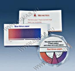 Описание: Эта бумага изменяет цвет с синего на красный при рН 3-5 и предназначена для определения точки нейтрализации при реакциях сильных кислот со слабыми основаниями.