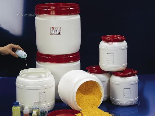 Ёмкости с широким горлышком для хранения или транспорта из ПЭВП Для жидкостей, порошков или гранулятов. Крышка закрывается герметично.