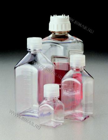 Описание: Прочные, легкие и намного безопаснее стеклянных бутылей. Многократно автоклавируемые, идеально подходят для работы в стерильных условиях, для хранения водных растворов и питательных сред.