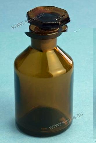 6.2039 Склянка для реактивов с притертой пробкой и узким горлом, янтарное (темное) стекло 125 110 57 24 21/18