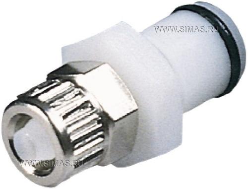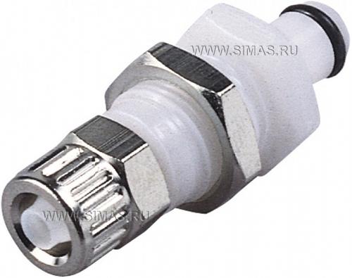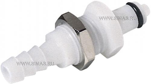 Быстроразъёмные соединения штырькового типа, Патрубки для монтажа на корпус, с резьбовыми наконечниками, номинальный диаметр отверстия 6.4 мм