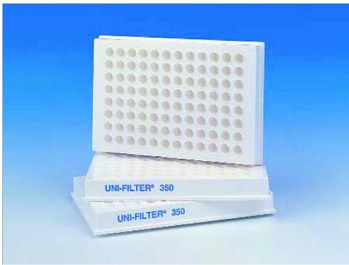 Эта фильтровальная планшета произведена согласно стандартам ANSI/SBS жестким белым полистиролом или Барексом для исключения проблем с выдачей оптической перекрестной информации во время считывания. 150 μл UNIFILTER имеет мелкие лунки, дающие высокую чувствительность определения.