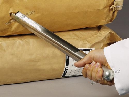 Описание: Недорогой пробоотборник простой конструкции для работы с сыпучими насыпными материалами с размером частиц примерно до 1 см. Позволяет проводить пробоотбор фундука, чайных смесей, зерна, и т.п. из мешков большого размера.