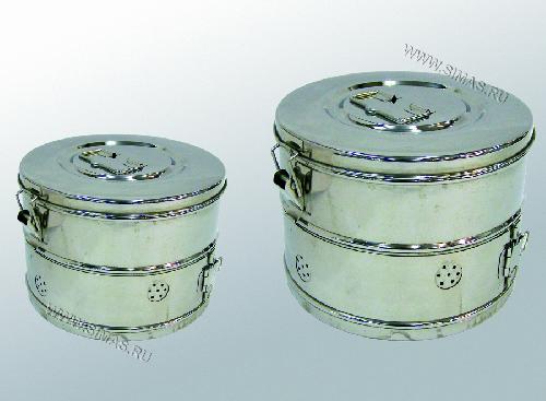 Цилиндрические корзины предназначены для автоклавирования и стерилизации стеклянных изделий. Изготовлены из нержавеющей стали с перфорированными отверстиями. Имеют ручку.