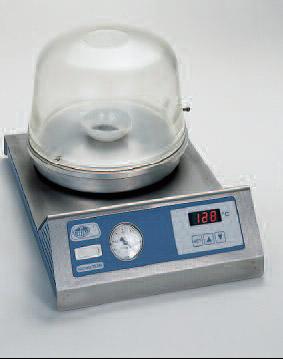 Описание: Свойства Электронная регуляция температуры, цифровой дисплей для 3 ячеек. Датчик температуры Pt-100. Плоская поверхность чашки из полированного алюминиевого сплава гарантирует герметичное закрытие. Закрытый нагревательный элемент. Наружный корпус из нержавеющей стали AISI 304.Вакуумный насос, соединение расположено сзади. Колпак из закаленного стекла с силиконовым уплотнительным кольцом. Клапан для спуска вакуума.