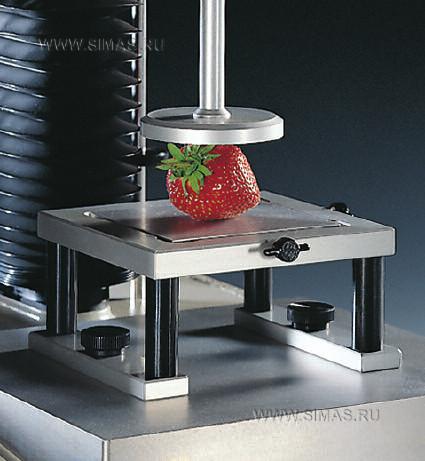 Описание: Используются для измерения твердости цельных фруктов сжатием. Для прямого испытания на сжатие необходимо, чтобы образец был меньше компрессионной пластины; при этом измеряется сжатие/восстановление формы, характер сжатия и вязкость/эластичность. Это позволяет также определять косвенные показатели, например, упругость и свежесть.