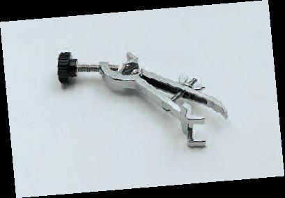 Описание: Самофиксирующийся зажим для двух бюреток, с центральным винтовым креплением. Изготовлен из хромированного металла, зажимные поверхности с покрытием из ПВХ. Позволяет видеть всю шкалу бюретки.